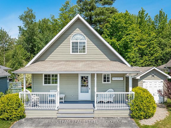 Top 5 Reasons You Will Love This Home: 1) Situated on a peaceful street in the sought-after Lakes of Wasaga Country Life, this 4-season chalet-style home delivers cozy living with the added security of a gated community, along with a full-width front porch inviting you to relax with your morning coffee or unwind as the sun sets and unlike many homes in the community, this one backs onto mature woods offering a rare sense of privacy with a tree-lined yard and direct access to a peaceful walking trail creating your own secluded escape 2) Designed with ease and comfort in mind, the open-concept layout features a welcoming gas fireplace, a main level bedroom, a 3-piece bathroom with a walk-in shower, and convenient main level laundry 3) The spacious, light-filled sunroom is a true bonus, presenting the perfect spot for a home office, second living area, or a quiet reading nook; step out onto the back deck and enjoy a private, tree-lined yard complete with nearby access to a peaceful walking trail 4) Upstairs, two large bedrooms and a handy 2-piece bathroom provide plenty of space for family or overnight visitors, creating a comfortable and private retreat for everyone 5) Enjoy all the perks of a vacation lifestyle without leaving home, including swimming pools, tennis courts, a splash pad, mini golf, basketball, and scenic trails; plus, you're just minutes from beaches, golf courses, and the excitement of Blue Mountain Village, making this your perfect all-season escape. 1,111 above grade sq.ft.