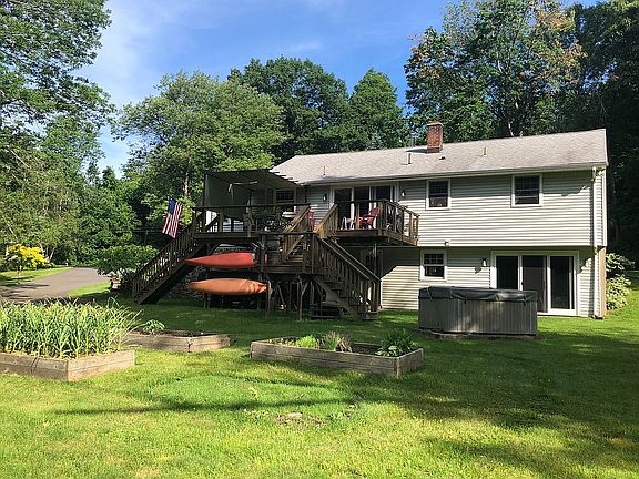 Approx 1647 sq. foot home on quiet street with large pet friendly yard. Minutes from I 84 and Rte 8. Large driveway with multiple parking spaces. In ground electric pet fence encircling entire home and most of landscaped yard. Sunny porch/mudroom. Large 12' by 24' deck overlooking very large private backyard with stone walls. Dog door. Walk up attic for storage, Wood stove. Large 18' 24' living area in basement with private full bathroom with walk sliding doors leading to back yard.