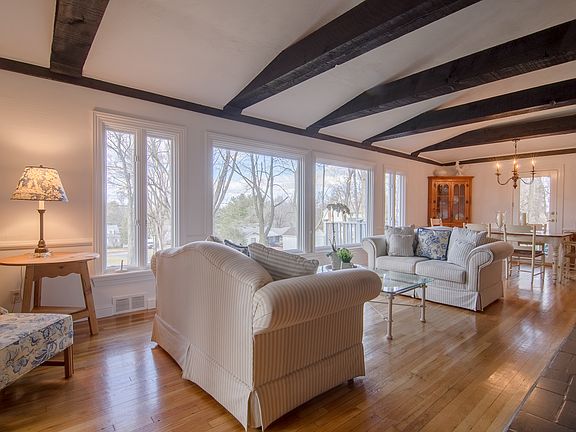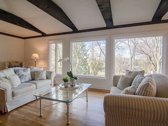 Located atop a gentle knoll on an exceptionally deep lot in one of Morris Countys most desirable residential communities, this absolutely pristine seven-room expanded ranch with updated gourmet kitchen, three large bedrooms (including a master suite), 2.1 baths, fabulous family room and huge windows throughout promises the very best in suburban living. Set far back from the quiet street and surrounded by mature lawns, towering trees and decorative plantings, this fine home is also convenient to schools, local and area shopping and commuter train service into Manhattan. The first level features a sweeping living/dining room with soaring brick fireplace, exposed rough-hewn beams, nearly an entire wall of large windows and access to the wrap-around deck; sunny kitchen with recently installed stainless steel appliances, breakfast area, skylight, and access to the deck and stone patio; spacious master suite (bedroom with coffered ceiling; sitting room with walk-in closet, skylight and floor-to-ceiling windows overlooking the patio; and full bath with skylight); two additional bedrooms, both with floor-to-ceiling windows and one with skylight; full hall bath; center hallway; and inner foyer. The lower level includes the expansive family room with natural stone fireplace, custom wet bar, exposed post and beams, and access to a secluded outdoor sitting area; powder room; laundry room; workshop; and utility/storage room. Ideal for children, the tiered back yard enjoys abundant natural shade and includes a detached two-car garage. Chatham is a thriving community of rolling hills, winding streets and beautiful homes with public schools rated among the finest in all of New Jersey. Although only minutes from the Mall at Short Hills, Chatham has a vibrant business district, and residents enjoy a wide range of recreational and cultural facilities – all within a short commute by Midtown Direct trains into New York City.