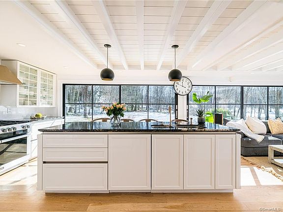 Storybook Cape on 2.5 private acres in the Historic Silvermine section of New Canaan & walking distance to Graybarns. Fully renovated with gorgeous architectural details, Snaidero kitchen, wide plank oak floors, walls of moving glass, raised coffered ceilings, stunning millwork, radiant heated baths, Waterworks fixtures, commercial grade linear fireplace, cedar taper sawn shake roof, and all new systems. Optional first floor master. Large and flat back yard with pond views. Fantastic curb appeal facing the Silvermine River. A walker's paradise! Picture perfect in every way. Agent is owner