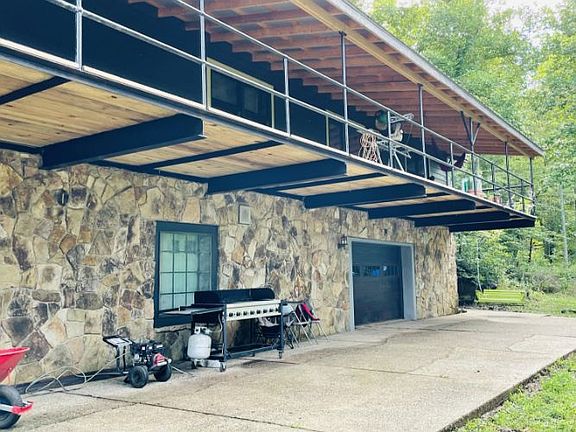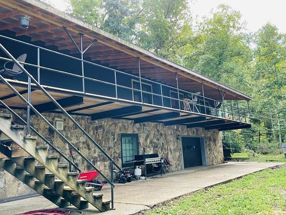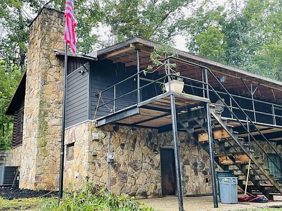 5000+ sqft log and stone cabin near the Daniel Boone National Forest in Burnside w 40 acres offers endless possibilities! 4BR, 3BA home features gorgeous stone fireplaces throughout, huge primary BR w updated master bath, open concept living dining kitchen on main, full length covered upper deck and lower porch, and unique spiral staircase! Full basement has massive stone bar w serving area and gorgeous stone whirlpool tub area. Secluded property is perfect for hunting and recreation, farming, or even homesteading w existing cistern, greenhouse frame, and supplemental coal wood burning heating unit installed that could be updated for use. Would make the perfect event venue or family rental w hookups in basement for an additional kitchen, plenty of rooms and outdoor areas w tons of natural beauty! Many improvements w new metal roof, new front framing and refacing w hardiboard 4+ inches of foam insulation and new wiring to this area, new doors and windows front, new front deck and covered porch, new flooring, new tiled walk-in master shower and vanity, new outside air unit, new 60x40 metal garage (doors on order), and seller's continue to make improvements while listed!