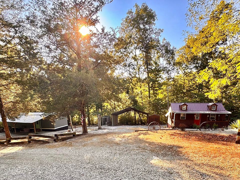 Hunting! Fishing! Lovin' every day!! Welcome to your Getaway Retreat in Jasper Bend. Less than a mile away from the Jasper Bend Boat Ramp & in the heart of Daniel Boone National Forest sits 4 lots w/ a Cabin & Trailer in a tranquil boat community. Driving onto the property you immediately see various amenities (ALL Included) such as a expansive outside covered area w/electric to host your family and friends w/ plenty of space to sit by the firepit, play cornhole or swing and enjoy nature. There is a Rustic outhouse & outdoor shower area. A massive Carport to place your Boat, vehicles, atvs, etc. A storage building, a playground set, a barn also included! The 2020 cabin features a interior space for bedroom with a full kitchen and bathroom. There is also a loft for additional bed or storage. The trailer needs some TLC cosmetically but features 2 bed, 1 bath and newly added awning on the outside perfect to relax outside. Both structures have electric, city water already connected! There is over 10 miles of great hunting property nearby. To fish, hunt, relax, play, this is the place for you!