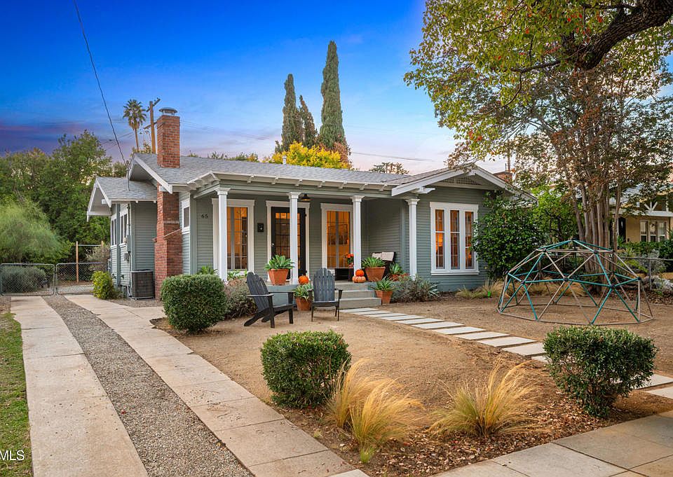 Tucked away on a tranquil street under a canopy of mature trees, this charming 1922 craftsman bungalow has been updated with good taste and a gentle touch. The traditional front porch flows into the airy living room. The living room opens to a light-filled dining room and kitchen. Built-in cabinetry! The kitchen is spacious with original cabinetry, many windows, and leafy views. Luminous wood floors throughout the living areas exude quality and ground the space. The original windows are intact! Both bedrooms are airy and offer oversize windows on two sides. The bathroom has been stylishly updated. A laundry area off of the kitchen adds to the feeling of well-thought-out convenience. French doors from the dining room open to a shaded brick terrace. The fenced backyard with mature landscaping provides peace and quiet, and an environment where kids and pets can play safely. The HVAC system is recent. The property offers a flat lot with incredible expansion or ADU potential. This fantastic location is just a short stroll to the Allen Gold Line Station, Colorado Blvd., and all the hip spots that Pasadena is famous for! All this, and you'll be a 3 minute walk from the Rose Parade on new years morning. This is a gorgeous property in a great location. Take a tour while it's still available!