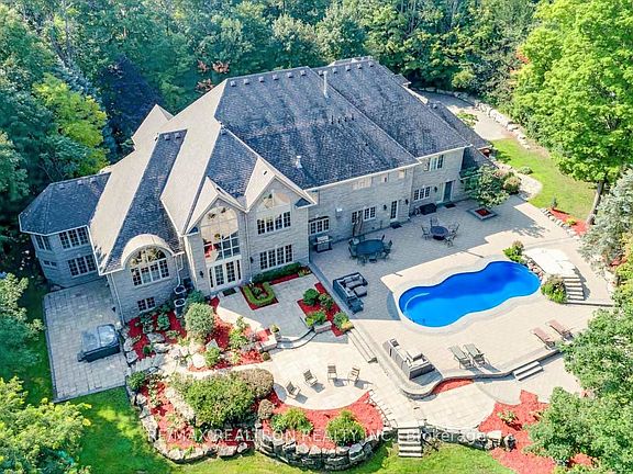 '15,000 SQ. F.T ' Stone Estate On Private 2 Acres In Luxurious Resort-Like Setting!~(9600 Sq.Ft.+5700) Sq.Ft. Fin. Walk-Out Lower!~ 7+ Car Garage+ Height For Lifts!~ High Elevation!~ Cathedral Center Great Hall W/30+ Feet Ceilings!~ Vaulted Ceilings! + 10 ft Ceilings~ Main Floor In-Law Suite With Liv Rm./ Bedroom/ Washroom/ Sep. Entrance!~ Entertainer's Delight Lower W/ Replica " Cheers " Show Wet-Bar/ Wine Cellar/ Lounge!~ Private Backyard Oasis W/ Interlocked In-Ground Swimiming Pool/ Waterfall & Gazebo. Offers To Be Reviewed On Thursday NOVEMBER 22ND @ 7:00Pm. Pls register by 6:00pm. .Seller reserves the right to review and accept pre-emptive offers