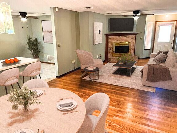 Gas log fireplaceFunctional layoutEasy flow between roomsWood flooringFully fenced-in yard