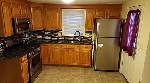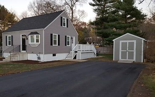 Looking for "Move In Condition?" Check out this 4 bedroom cape home on a quiet side street. Loads of updates include New furnace just installed, roof, Harvey windows, maintenance free vinyl siding, precast front stairs/porch, stairs and large deck, stone patio, new carpeting, new bamboo flooring in living room, kitchen with granite counter tops and stainless steel appliances, brand new paved driveway, updated bath. Large shed. Deck overlooks landscaped nearly fenced yard.