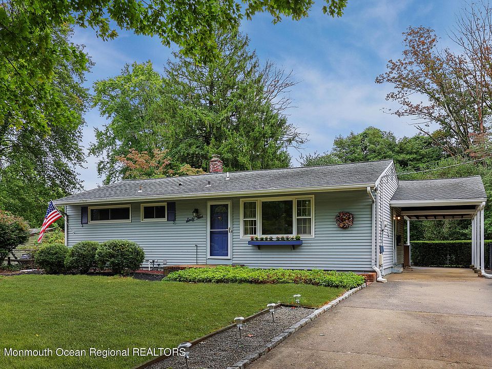 THE LIVING IS EASY in this move in ready ranch in desirable Lincroft! Living room offers custom built ins, hardwood flooring and a large picture window to welcome in the natural light. Kitchen with brand new dishwasher and stove offers an eat-in dining area that overlooks the private backyard. 3 bedrooms and an updated full bath complete the first floor. Unique to the neighborhood, a lower level provides additional living space with a large finished room, laundry room, half bath and workbench/storage area. Additional highlights include convenient one-level floorplan, park-like backyard with ornamental plantings, patio, carport and large attic. Benefit from excellent schools and close proximity to parks, beaches and easy access to GSP, train, bus and ferry commuting options.