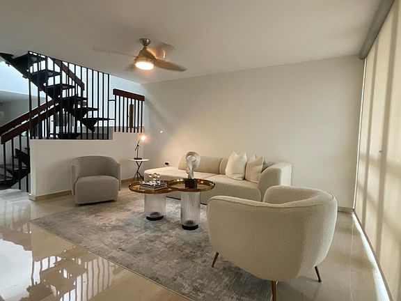 Townhouse with 4 bedrooms and 2.5 bathrooms. Terrace with outdoor kitchen. Solar water heater, cistern, video cameras, alarm, generator with manual transfer switch. Fully remodeled. Includes appliances..