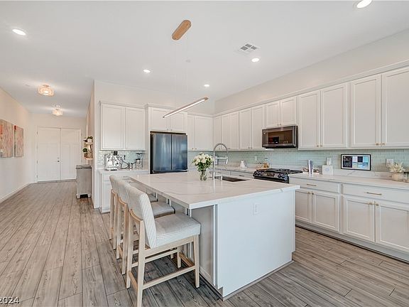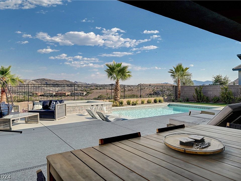 This luxurious retreat nestled in the heart of Lake Las Vegas features 4 spacious bedrooms and 3 beautifully appointed bathrooms, all designed with comfort and style in mind. The expansive open floor plan boasts 2,281 sqft of living space overlooking breathtaking mountain and valley views. The gourmet chef’s kitchen features top-of-the-line appliances and a large island, making it a culinary haven. The beautifully landscaped backyard features a private pool and spa, ideal for entertaining guests or relaxing with family. Additional amenities include a Tesla charger, RV 220v hookup, a water softener, a fully independent and separate casita, a three-car garage, and fully paid-off SIDs/LIDs. Residents of LLV can enjoy world-class amenities like golf membership, fitness center, pools, tennis courts, and a packed schedule of group exercise classes. With stunning views and luxurious features, Lake Las Vegas Sports Club is perfect for staying active, unwinding, and connecting with neighbors.