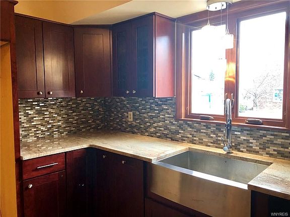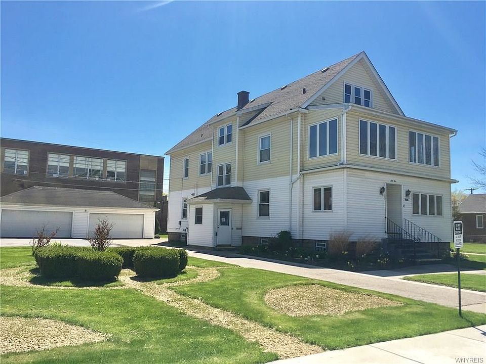 So many possibilities on this home with over 3,000 sq ft.It is currently a single family home but appears to have been a multi family home previously. Huge lot with 4 car garage. Currently home has 9 rooms that could be used as bdrms or use as offices, dens, playroom. Possibilities are endless. This home is loaded with old world charm. Hardwood floors w dark inlaws. Formal dng rm w french doors and coffer ceiling. Remodeled kitchen w cherry cabinets and granite countertops. 3 full baths. Finished basement . Huge walk up attic.Newer windows. Includes vacant lot next to house.
