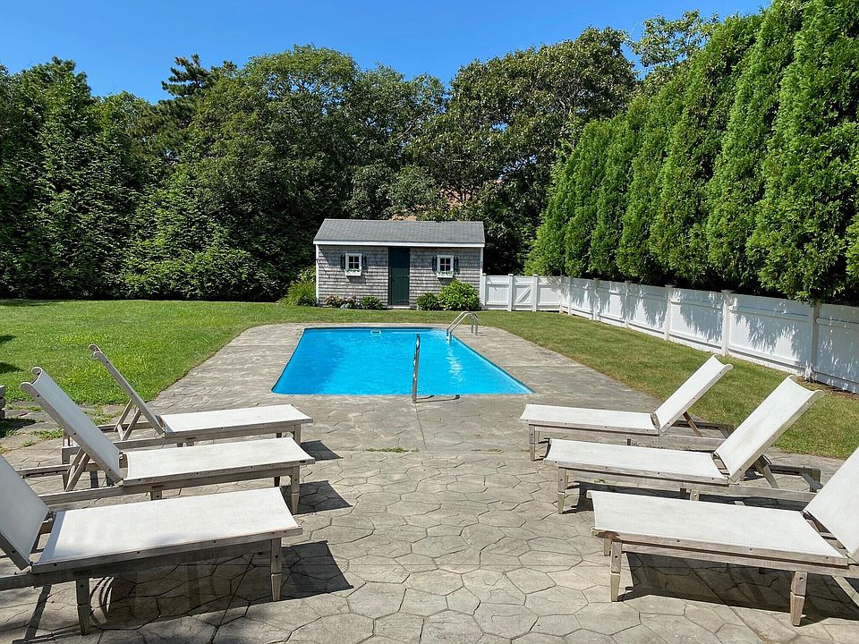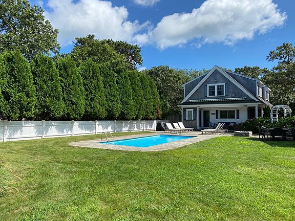 KATAMA COMPOUND with HEATED POOL - Charming three-bedroom cape, with updated kitchen and baths, lacks nothing. Open living with soaring ceilings, and access to the oversized yard and patio. Splash the day away in the heated saltwater pool, highlighted with a private powder/changing room and fully equipped cabana. Located above the oversized, three-car garage, you will find a one-bedroom guest house, the perfect private accommodations for family and friends! Ideal for personal enjoyment, an investment opportunity, or both. The property has strong rental history and tenants in place for the 2021 season. Need more room? Not a problem, connected to town sewer, the property can accommodate up to 7 bedrooms! With the sandy shores, roaring surf of South Beach and calm waters of Edgartown Great Pond nearby, this home is sure to be a crowd pleaser!