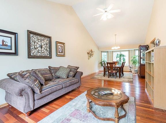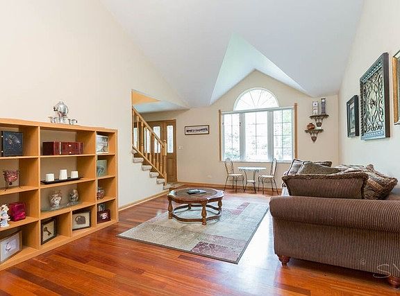 Beautiful custom home with newer roof - Walk to the 2 public beaches of Lake Zurich or relax on deck & enjoy your own landscaped close to 1/2 acre wooded backyard. formal dining and living room with vaulted ceilings, open kitchen/great room with woodburning fireplace. Brazilian cherry hardwood floors on 1st level. Large master bedroom with vaulted ceiling, 2 walk-in closets & master bath with whirlpool tub, dual sink vanity & separate shower. Basement with bar and deluxe kegerator & a lot of storage. Possible 4 bedroom in basement
