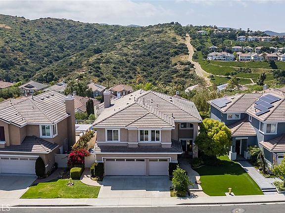 Come Tour this Incredible Family Home offering 7 Bedrooms and 5 Bathrooms – First Time on the Market EVER! Featuring tranquil Canyon Views and Coastal Breezes, this meticulously maintained home nestled in the coveted Vista Pointe neighborhood of Aliso Viejo is a Must See! Pride in Homeownership is evident from the Remodeled Kitchen and Bathrooms plus Blooming Lush Landscaping.  Every corner of the home exudes warmth and hospitality from the Upgraded Milgard Dual Pane Windows with Wood Trim to the custom Crown Moldings. Inviting front patio with tall double door entry leads to the foyer area. With an elegant spiral staircase and a circular flow of the main level, this floorplan is most ideal.  Living Room with an abundance of natural light opens to Formal Dining room featuring a large picture window showcasing the backyard lawn. Main Level bedroom and Full Bathroom provides options to host guests with ease or have a private office area. Light and Bright Island Kitchen features Quartz Countertops, GE Stainless Steel Appliances and plenty of counter and cabinet space. Enjoy entertaining with the convenience of the in-kitchen dining space and the adjacent Family Room adorned with a stone-framed Gas Log Fireplace. Ambiance of peace is exemplified from the views to the backyard gardens from all the living areas. Backyard is both welcoming with the Hillside Views and Relaxing with options for Al Fresco Dining in the covered patio. Relax on the oversized concrete open area perfect for a Jacuzzi Hot Tub. Retreat to the upstairs Primary Suite featuring Vaulted Ceilings, Numerous Windows, an Oversized Balcony, Fully Remodeled Bathroom and Large Walk-in Closet. Five more large upstairs bedrooms are perfect for a growing family and conveniently laid out with three more secondary bathrooms. Stylish Cambria Quartz countertop bathrooms include a Jack-in-Jill style, a private en suite and a third bathroom with dual sink vanity separate from the shower tub toilet room.  Enjoy the convenience of an upstairs laundry room with a utility sink and a plethora of built-in cabinets. With nearby Aliso and Wood Canyon hiking and biking trails, easy access to 73 Tollway, and world renowned pristine beaches of Laguna Beach just a 15-minute drive, the location is Perfect.  No mello-roos tax and award winning Capistrano schools, with K-8 Don Juan Avila within walking distance.  Convenience and elegance are seamlessly woven together in this Pristine Family home!