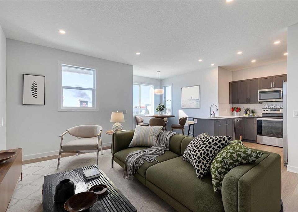 Discover the ultimate in luxury living in this stunning, 3-bedroom corner unit townhome with a garage, nestled in the esteemed Belvedere Rise community, where luxury and convenience come together in perfect harmony. This exclusive project showcases exquisitely designed townhomes featuring a single attached garage with a driveway for a second vehicle, ideal for families seeking the ultimate in convenience and freedom. The seller has upgraded the HVAC to a 2-ton unit ($6,000 value) and added a BBQ gas line with a quick disconnect and shutoff valve, making outdoor entertaining effortless. Situated just a short stroll from East Hills Shopping Centre, residents can indulge in the fresh air while accessing everyday essentials like Costco, Walmart, banks, and more, all within walking distance. Imagine being just steps to Bus Rapid Transit (BRT), Stoney Trail (Calgary’s ring road/perimeter highway), and a short drive to Chestermere Lake for outdoor activities, Downtown Calgary, the Calgary International Airport, the South Health Campus, Kananaskis, and Banff. Better run, this wont last long. Some photos are virtually staged**