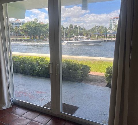 DIRECTLY ON INTRACOASTAL WATERWAY - 1 bedroom, full size kitchen, large living room, 1.5 baths. This apartment is on the first floor with a private patio directly on the Intracoastal Waterway! Watch gorgeous sunsets over the Intracoastal Waterway from your apartment's living room or or your patio. Central location right off of Palmetto Park Road in Por la Mar, one of Boca Raton's most desirable communities on A1A. It's a short 3 block walk to either the beach or to downtown Boca Raton's many restaurants, shops, and to Mizner Park. Resident parking in security gated parking lot and on the street in front of the apartment. Secured laundry room. Annual lease $2,195 per mo., 1st, last, & security. No brokers.