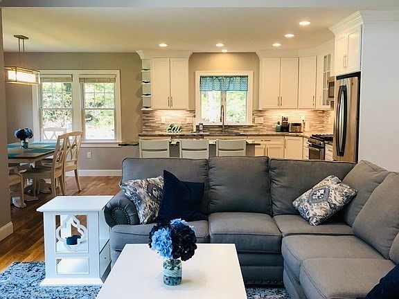 Available January 2021. Winter 4 month rental. New construction! EVERYTHING is brand new in this beautiful fully furnished 3 BR, 2.5 bath home that sleeps 8. 1st floor master bedroom features king size bed, walk-in closet and stunning master bath. Feel at home in the spacious living room with vaulted ceilings, gas fireplace and a great view of nature off the back deck. Prepare and enjoy your meals in the kitchen or use the Weber grill. Walking distance to the beach and Cape Cod Winery. 5 minute drive to Falmouth center, Falmouth harbor and the new Bad Martha's Brewery.Quick drive to Woods Hole and Martha's Vineyard Ferry. This will not last long! This is winter rental rate. 1/1/2021-5/24/2021. Utilities included.