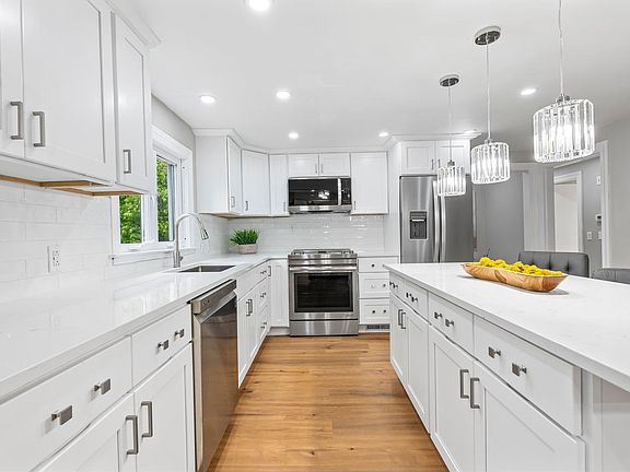 Nestled on a quiet dead-end street, this beautifully updated home offers the perfect blend of comfort, convenience, and outdoor living. Backing directly onto the golf course and cross-country ski trails, you’ll enjoy year-round recreation right from your backyard. Located just minutes from downtown Laconia, NH, this home provides easy access to Lake Opechee, Lake Winnipesaukee, and all the Lakes Region has to offer. Laconia is known for its scenic beauty, vibrant downtown, and seasonal events like Motorcycle Week, Laconia Pumpkin Festival, and Winter Carnival. With a variety of shops, restaurants, parks, and walking trails nearby, there's something for everyone—whether you're seeking adventure, relaxation, or a strong sense of community. Inside, the home boasts a BRAND NEW kitchen, NEW flooring, and a durable METAL ROOF, along with numerous recent updates throughout. The spacious primary bedroom suite features a large walk-in closet. A partially finished basement adds flexibility for a home office, gym, playroom, or creative space. With a quick close possible, this move-in-ready home is a fantastic opportunity to own a well-maintained property in one of Laconia’s most desirable neighborhoods. Whether you’re looking for a year-round residence or a vacation getaway, this home checks all the boxes! HOME WARRANTY included. Agent interest.