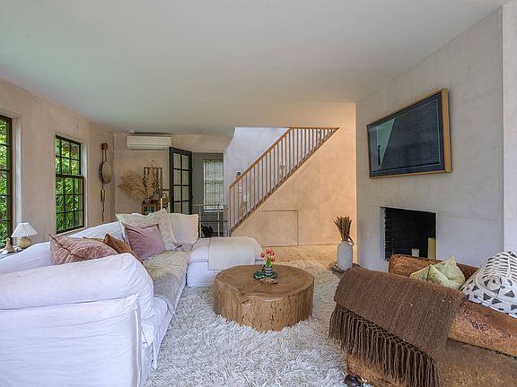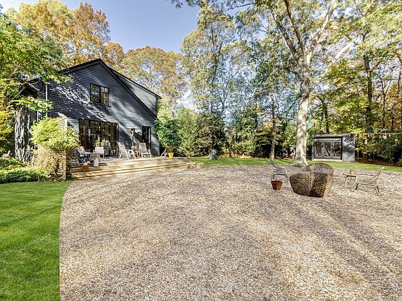 Just outside East Hampton Village and moments from calm bay beaches, this renovated 2022 saltbox marries classic charm with a health- and design-conscious ethos. Sited on half an acre with gated entry, the home, as arranged currently, offers 1,500 +/- sq. ft., 2 bedrooms with 1 full and 1 half bath - plus ample room for expansion and to add a pool. The renovations are immaculate with improvements that include a new roof, first-floor flooring, new windows and doors, and thoughtfully placed skylights on the second level. Limewashed walls, untreated natural hardwood floors, and green insulation set a serene, non-toxic backdrop for modern living, while a gated entry ensures privacy within a peaceful East Hampton neighborhood. At the heart of the home, an open-concept great room welcomes with a fireplace and floor-to-ceiling sliding glass doors that frame the grounds and draw in soft coastal light. An elegant marble-clad, eat-in kitchen hosts everyday meals and weekend entertaining with ease. The large ensuite primary is an airy sanctuary crafted for rest and restoration with double-height ceilings, exposed beams, and skylights overhead. A comfortable guest bedroom sits nearby. Beyond the sliders, the half-acre parcel unfolds as a canvas for your future vision-think terrace, lounging lawn, and a new pool to complete the resort experience (subject to permits). An auxiliary structure currently serves as a private home gym, creating a dedicated wellness zone away from the main house. The property offers compelling potential to grow while preserving its tranquil setting. A quiet street just beyond the Village puts you minutes to bay beaches, waterfront dining and marinas, beloved farm stands, and the boutiques East Hampton Village, with ocean beaches an easy hop away-delivering a relaxed Hamptons lifestyle today, and exciting possibilities for tomorrow.