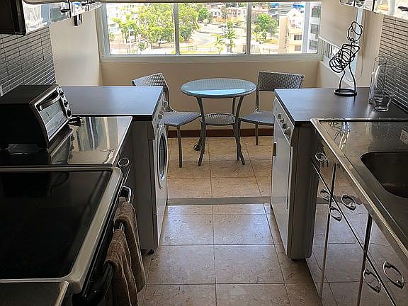 In the heart of Condado, quiet street, walkable area near Walgreens, top restaurants, and hotels (Marriott). Beautiful apt. in 10th floor, excellent cross ventilation with ample balcony. 2 bedrooms, 2 bathrooms. Family is convertible to third bedroom or den. Completely equipped and furnished. 1 covered parking space. Full capacity generator. Just five minutes walking distance to the beach. Close to a variety of restaurants, bars, supermarket, pharmacy. Full power generator and water cistern. Additional parking 2 mins away for $200/month.