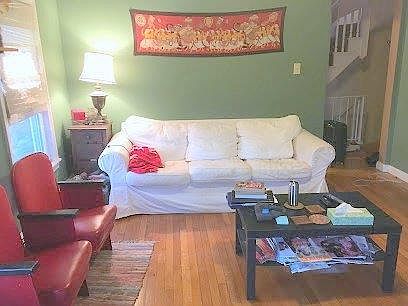 Available 7/1 for one-year or two-year lease. Comfortable two-bedroom one-bath apartment in thriving Union Square, Somerville. Top two floors of a two-family home with front yard; shared front entrance as well as private back entrance. 897 square feet includes a home office, large bathroom, and two coat closets. Sunny eat-in kitchen features a large pantry, dishwasher & garbage disposal, new fridge, new five-ring gas stove. Hardwood floors throughout, street parking. Basement has free washer & dryer, storage space, external entrance to store bikes. Included: landscaping, snow removal, water. Not included: electric, internet, gas (installed app-controlled thermostats). No smoking; small pets negotiable. Comes unfurnished, with current furniture available for purchase. #85 commuter bus to Kendall Sq stops right outside the house; short walk to #87, #88, #86, #91, #83, and CT2 bus connections to Davis, Porter, Harvard, Central, Sullivan, & Lechmere. Blocks away from Market Basket, Bow Market, Nunziato field & dog park. First & last month's rent + security deposit. (Reference #143248) Text Alden @ 978-601-5532 Broker Fee = 1 Months Rent Available 7/1