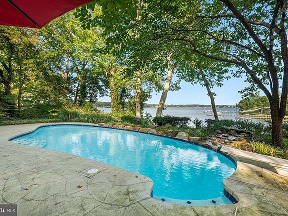 FANTASTIC SOUTH RIVER VIEWS from this beautifully-maintained 4-BR home on a very private lot. It's all here: heated waterside pool and DEEP water private pier (8+ ft MLW, slips for large boats, beach, party deck, shower). Inside, there's a gourmet kitchen, fabulous master suite (steam shower, jacuzzi tub, FP), 3 add'l bedrooms each w/ private bath, & home office. See on-line VIDEO TOUR.