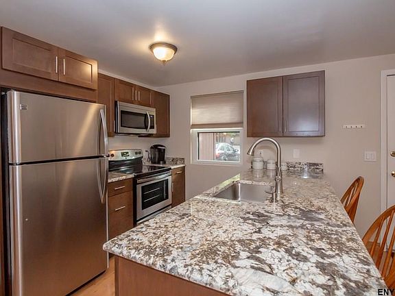 BRAND NEW KITCHEN! Granite counter tops, beautiful built in cabinets, brand new SS appliances, perfect for entertaining, what more could you want? Privacy fence that backs up to trees. 1st floor bedroom and laundry. Cathedral ceilings make this 3 bedroom 2 bath home feel much more spacious. Nice size closets, newer laminate flooring & newer Rinnai gas heater! Enjoy the walking and bike paths, local eateries and Saratoga Lake just down the street!