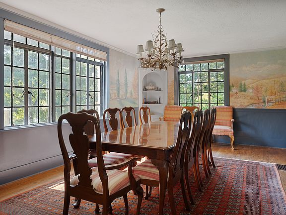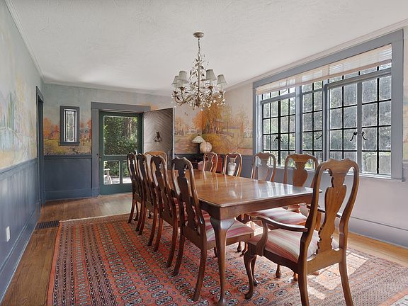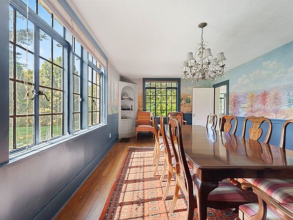 The most charming English country style cottage with a private setting and estate feel through the grounds. Enter the spacious foyer and be immediately enchanted by this designer home with large, leaded paned windows bathing the home with soft, natural light, built-ins throughout, stucco fireplace in the comfortable living room, custom antique mural of Harwinton in the spacious formal dining room, updated country kitchen, bonus butler's pantry with cocktail bar and coffee station, and a mudroom large enough to be an extra living space. Head up the elegant staircase with large landing and find a primary suite with updated bathroom, and two additional bedrooms sharing a full bath. Each of the rooms has been thoughtfully designed and is inviting in all seasons. The main level interior spills out of several delightful doorways into the beautiful gardens with hidden archways, stonewalls, and rolling lawns with access to Leadmine Brook and walking trails through the woods. Leave your cares behind and feel transported to a more peaceful time in this gracious mini country estate just minutes to Litchfield.
