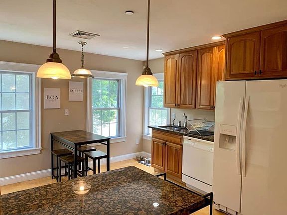 Superb Downtown location! This top floor, adorable 3 bedroom condo is ideally situated within minutes to shopping, dining and all Westborough has to offer! Large open kitchen/dining room with plenty of storage and granite counters. Gleaming hardwood floors throughout. Three good-sized bedrooms and a large bathroom with a recently replaced washer/dryer. Partly furnished, bring your bed and move in! Easy access to Route 9, Mass Pike, the MBTA station to South Station. Tufts Vet school 7 mins away. Assigned parking spots and a large shared yard for summer day lounging or play! This unit includes all necessary appliances with central heating and AC. There are several crawl spaces that double as storage space. Big sliding door that opens onto an updated upper deck that overlooks the beautiful yard. Landlord is responsible for water and sewage, landscape maintenance, fall leaf clean up, snow shoveling, and pest control. Tenant is responsible for electric, gas and internet. Monthly pet fees separate (Cat $25/mo ; Dog $50/mo)