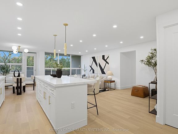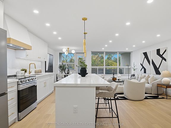 Welcome Home! Experience the epitome of modern comfort in this rarely available 3-bedroom showstopper - fully renovated from top to bottom with exceptional attention to detail. This spacious unit offers a bright, open-concept living area with a walk-out to a large balcony showcasing peaceful northwest views overlooking lush, private treetops. Gorgeous, high-end engineered hardwood floors flow seamlessly throughout. The state-of-the-art custom gourmet kitchen features opulent quartz countertops and backsplash, top-of-the-line stainless steel appliances, and a panel-ready dishwasher. Enjoy custom millwork and built-ins in every bedroom, along with a stunning in-suite laundry room featuring a sink and a large custom closet at the entrance for added convenience. The bedrooms are generously sized, including a primary suite with a walk-in closet, while the luxurious bathrooms feature custom vanities and quartz countertops. Every detail has been upgraded - from new doors and hardware to thoughtfully designed storage throughout. Includes parking, locker & more! The building's common areas have been recently updated, with new elevators and lobby furniture coming soon. Truly a must-see - this rare 3-bedroom gem will not last!