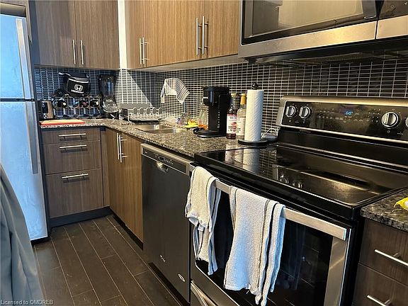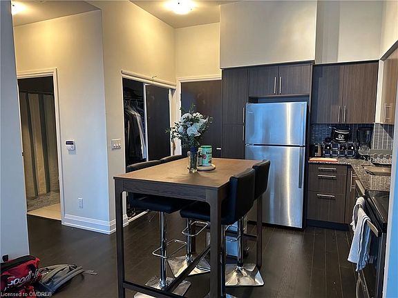 Indulge in penthouse luxury at the Rain with this top floor unit including 10ft ceilings, laminate floors, and floor to ceiling windows that soak in tons of natural light. The open concept unit flows into the kitchen that features granite countertops & stainless steel appliances. The large balcony overlooks a beautiful pond and trees. Don't miss the building's resort-like amenities, including:24hr concierge, indoor pool, hot tub, gym, sauna, yoga studio, rooftop patio, party and media rooms.The location can't be beat, just steps from the Go station as well as schools, shopping, restaurants and much more in the highly sought after Kerr village. 2023-09-21