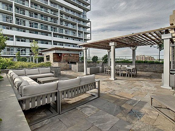 Rain Condo. 1 Bed 1 Bath On High Floor With 9Ft Ceilings. Spacious Open Concept With 2 Walkouts Onto Large Balcony. Unobstructed North Views. Stainless Appliances And Granite Counters. 1 Parking And 1 Locker Included. Full Amenities: Indoor Pool, Whirlpool, Sauna, Large Gym, Games Room, Party Room, 24 Hr Security, Rooftop Terrace, Guest Suites. Easy Access To Qew And Go Train Station.