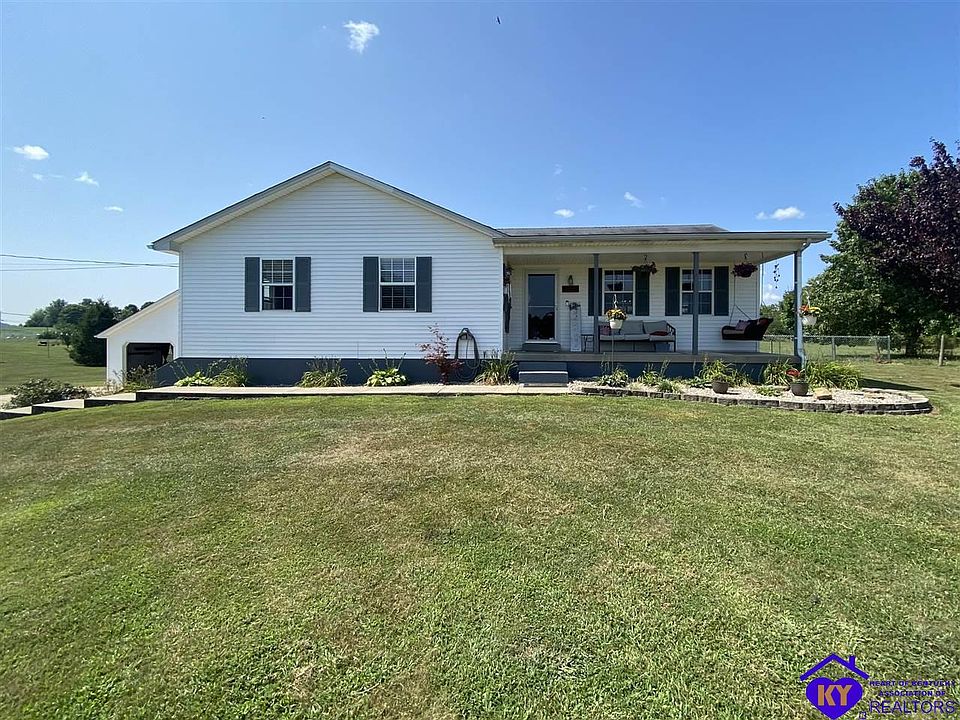 THIS HOME IS MOVE IN READY (WAS IN CONTRACT 45 DAYS BUYERS UNABLE TO PURCHASE) Property & Home offers plenty of room for growing family. Just under 3400 Sq Feet on1.58 acres. 3 Large BDRs (possible 4th in basement) & 2 full baths. Country setting just 18 Minutes from Etown, 10 Min. to Brandenburg and only 10 minutes from Fort Knox. This amazing home features both a Detached 36X30 with EXTRA amenities: ceiling fan, water, internet, wall to wall electric, a/c, large attic, separate meter and a Main garage approx.. 24x28 which also leads into 1 of 2 basement entries. The Family & Kitchen rooms provide an open concept feel which leads to the X-Large Deck overlooking the backyard to entertain as well as a secure separate fence for pets. Water Pump & Electric Access located in rear yard as well as installed into rear decking. Motion Lights Surround Home. Finished Basement has 8 x 8 laundry room, family room, separate storm/storage as well as gas hookup for FP. County recently added water lines. SELLERS OFFERING $3K for BASEMENT FLOOR ALLOWANCE