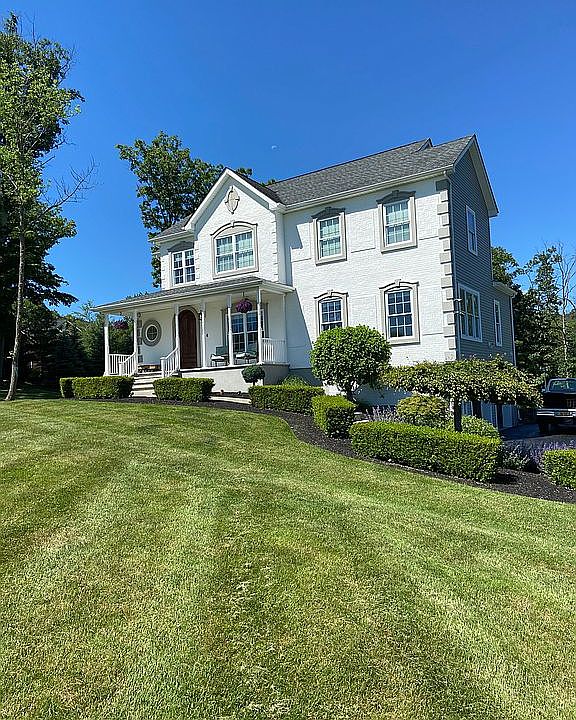 For the most discerning buyer who is looking for new construction or a young build, your search has ended here! This 2008 colonial sits majestically on 3.7 acres with stunning mountain views in an upscale executive development. Just 9 miles north of Rockland County w/easy commuting access to NYC this home will exceed all your expectations. Included are dual master suites, custom cab. & updated white quarts countertops , s/s GE profile app., Italian tile, HW fls., and crown moldings throughout. The fully equipped built in entertainment center and gas fireplace with quartz and custom built mantel offer the perfect escape after a long day. Custom walk-in closets, flat screen TV hook-ups throughout and outdoor fenced in basketball court. Amazing kidney shape inground salt water pool.