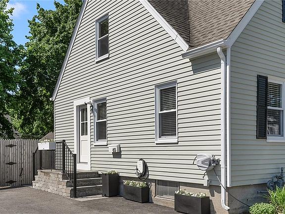 Welcome to this updated 3-bedroom, 2-bath Cape in the heart of Riverside. This turnkey home features an open concept living and dining area, anchored by a new gas fireplace, that flows into a contemporary kitchen with quartz countertops, coffee bar, and all-new appliances. A flexible first-floor bedroom serves as an ideal home office, and a fully remodeled bath with walk-in shower completes the main level. Upstairs, find two additional bedrooms, a large walk-in closet in the primary, and a renovated full bath with space-saving barn door. Throughout the home, a combination of new and refinished hardwood floors adds warmth and character. The partially finished basement provides bonus living space, and the unfinished side includes a new washer and dryer. Step outside to a fully fenced backyard with garden beds, shed, and new bluestone patio, perfect for relaxing or entertaining. Energy-efficient features include solar panels owned outright, Level 2 EV charger, ductless heating and cooling, tankless water heater, new doors, and upgraded insulation, providing comfort and savings year-round. Located just steps from the East Bay Bike Path, Borealis Coffee Co., playgrounds, schools, and shopping, this home offers modern convenience and efficiency in one of Riverside’s most desirable neighborhoods. Schedule your showing today!