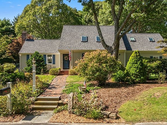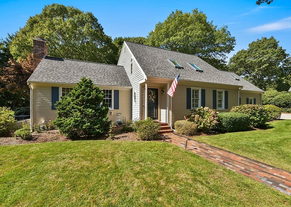 Tucked away in Cotuit Coves, this timeless Cape offers charm, comfort, and convenience on nearly half an acre of private, landscaped grounds. Designed for relaxed living and entertaining, the home features a bluestone patio framed by stone walls and a spacious second-floor deck for effortless indoor–outdoor enjoyment. Inside, sun-filled rooms with vaulted ceilings, exposed beams, and skylights create an airy, inviting atmosphere. The chef’s kitchen, appointed with Wolf appliances and a breakfast bar, flows to a fireplaced living room and dining area at the heart of the home. A first-floor primary suite allows for easy single-level living, while two additional bedrooms, full baths, a den, and a versatile bonus room occupy the second level. With an attached two-car garage, outdoor shower, and garden shed, this special property is steps from Crocker Neck Conservation Area and minutes from Cotuit Village, Willowbend, and Mashpee Commons.