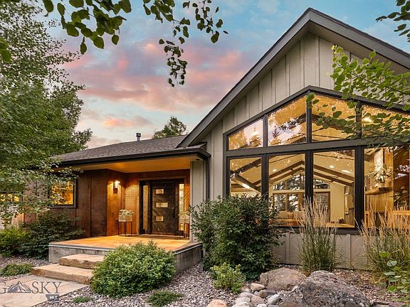 Tucked into a private, tree-lined lot in Bozeman's coveted Triple Tree Ranch and directly backing tranquil Limestone Creek, this stunning industrial-rustic home blends custom design, reclaimed materials, and modern functionality. A standout in the 2019 SWMBIA Parade of Homes, this single-level, ranch style home features a full-scale renovation and thoughtful 200+ square foot expansion. The open-concept main level includes a chef’s kitchen with concrete countertops, hickory cabinetry, 48” Dacor range, GE Café appliances, and a walk-in pantry with a live-edge barn door. The adjoining wet bar features a dual-tap kegerator, beverage fridge, and epoxy bar top made from vintage truck bed planks—matched by open shelving and reclaimed wood tile backsplash throughout the living spaces. A gas fireplace with walnut mantle, custom built-ins, and expansive windows complete the cozy yet refined main living area. Offering 5 bedrooms and 4 bathrooms, the home includes a luxurious primary suite with vaulted ceilings, en-suite bathroom with copper soaking tub, heated floors, and a double-sided fireplace shared with the adjacent office. The junior suite boasts a private bathroom and walk-in closet, while two additional bedrooms share a functional Jack-and-Jill bathroom. A fifth bedroom/flex space makes an ideal home gym, secondary office, or playroom. Additional features include a dedicated office with deck access, heated 3-car garage with EV charger and custom cabinets, Brazilian hardwood deck with built-in grill/smoker, mudroom with built-ins, and whole-home A/V and smart lighting. The exterior stone wood burning fireplace provides an exceptional outdoor living retreat, while the professionally landscaped yard with extensive mature trees and adjacent HOA open space offers rare protected privacy. This one-of-a-kind Bozeman home delivers refined Montana living just minutes from the Bozeman Deaconess Hospital, bustling Downtown Bozeman, Montana State University, and all of the outdoor recreation Bozeman is known for.