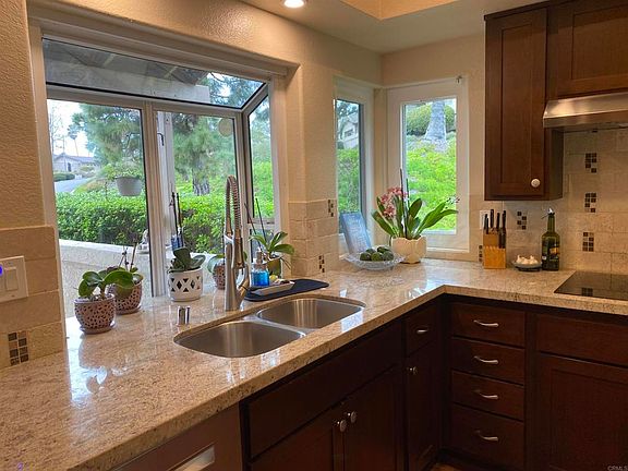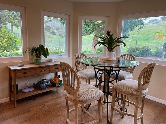 Turnkey - completely remodeled with new appliances, new cabinets, new custom sinks and fixtures, new wine cabinet. Unique private location - no one behind or in front and large grassy area adjacent for privacy and play. This unit lives like a single family with lots of space and open area. Every attention to detail has been given. New LED lighting throughout with fans. Wood floors throughout with easy maintenance. I use it as 2BR and office but it has a closet and can be a 3rdBR. The master suite has its own private balcony with lovely views. The back private patio is adjacent to open 40 acres and has a lovely garden behind the private patio with trees. Oversized 2 car garage. Bonsall Schools are within walking distance.