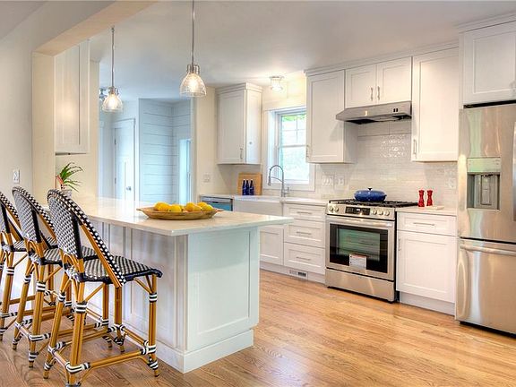BRAND NEW TOP TO BOTTOM RENOVATION! - READY FOR IMMEDIATE OCCUPANCY ! - Set on a quaint street in Primrose Hill, dotted with historic, antique homes, you will find this complete architect-designed, renovation ready for immediate occupancy. This 3 bed, 2.1 bath home, with charming curb appeal, sits on a large quarter acre lot, and has just been rebuilt providing a beautiful open floor plan as you enter the front door. The south facing kitchen, flooded with natural light provides a gorgeous new kitchen, appointed with stainless appliances, quartz counters, and opens out to the dining /family room. The brand new red oak flooring, new HVAC heating/central air, new 200 amp electric, new gas-fired hot water tank, composite deck off kitchen, new roof and windows are just a few of items in this top-to-bottom rebuild. The first floor is completed by an adorable entry foyer with built-in bench, and half bath. Step upstairs to the bedroom level offering a generous sized primary with en-suite bath, high ceilings, two guest bedrooms, and hall bath. Closets galore! The unfinished lower level has a walk-out to backyard, is great for storage or future additional recreational space. Minutes to access the East Bay Bike path and the town center of Barrington's shops and restaurants, it is centrally located with easy access to Providence and South East MA. Come see! NOT A DRIVEBY!