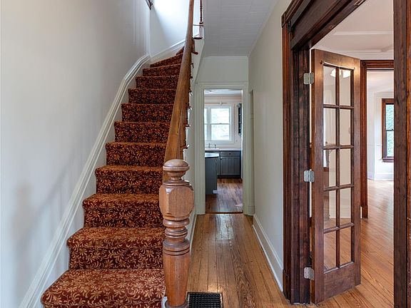 Just minutes from the Mario M Coumo Bridge, this circa 1890 Victorian offers tall ceilings, tin ceilings and timeless character that set a gracious tone. A private front porch welcomes you home, while a back deck overlooks the expansive yard — ideal for gardening, play, or evening gatherings. The main floor offers a light-filled living room, dining room, kitchen, and full bath. Upstairs are three bedrooms and a versatile bonus room, perfect for a nursery, office, or spacious dressing room. The second-floor bath is a standout, designed as a wet room with seamless tile and a walk-in shower, offering a fresh, European-inspired feel that pairs beautifully with the home’s historic design.