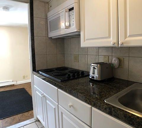 Available now to move-in this cozy ground floor 1 bedroom in West Newton. Kitchenette with refrigerator, granite countertop, electric cooktop, microwave and white cabinets. Living/dining area, bedroom with good closet plus den (office), washer/dryer in the unit. Utilities are not included (gas for heat). Private Patio and 1 off street parking included. Sorry, no Pets. No Smokers. Convenient location: near Commuter Rail, X-bus to Boston, Rt. 128 and I90. Enjoy all the shops and restaurants in West Newton Sq. or Moody St.! Lease till 5/31/2023 with option renewed. No option for 2nd car! Excellent credit and references a must.