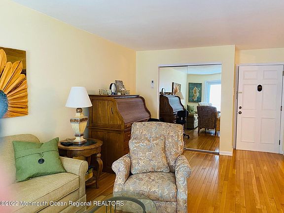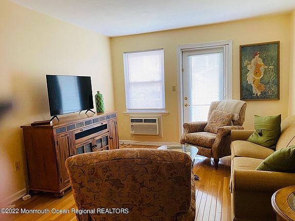 Popular Embury Arms condo for sale. This 1 BR 1 Bath ground floor unit has ramps for easy entry. Clean pale yellow walls through out unit with updated kitchen and bath. Wood floors and modern furnishings add to attractive cozy feel. Furnishings are negotiable. Building is 1 of 4 with permit/reserved parking for owners when available. There is ample basement storage along with large laundry room in basement. Complex is near the boardwalk, Asbury Park, Bradley Beach, shops and medical facilities. Trains and buses to NYC also close by.