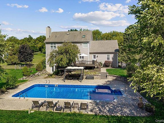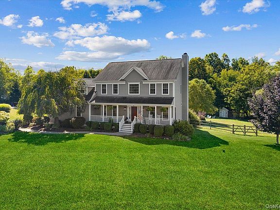 The Warwick home you have been searching for is now available. Your new home is perfectly situated at the end of a cul-de-sac in the picturesque Covered Bridge neighborhood. Arriving you will notice the tree lined streets, mature landscaping, paver walkways, adorable covered front porch and the awe-inspiring yard space featuring in ground pool. Stepping inside you will be greeted with a soaring two story entry, brand new gleaming hardwood floors along with 9' ceilings throughout the main level. The sun-drenched living space offers a well thought out floor plan on the main level inclusive of a chef's kitchen, open floor plan flowing into the living room with a cozy gas fireplace, a formal dining room, additional family room, powder room, laundry area, and a private den/office space. Your chef's kitchen is outfitted with a large island, dining area, stainless appliances, recessed lighting, pantry, and ample cabinet storage. Ascending to the second level you will find three lovely guest bedrooms and a guest bathroom featuring a double vanity. The primary suite with double door entry features two walk-in closets, dressing area, en-suite bath with shower and soaking tub overlooking the backyard. You will surely be impressed with the space on the lower level as well which provides an additional family room with a full walk-out to the rear yard, a third full bath, gym/recreation space, and ample amount of storage. Enjoy the spacious and well-manicured yard perfect for entertaining and yard games along with the ability to lounge poolside at your leisure. This home also includes the conveniences of dual central AC zones, smart thermostats, large two car garage and is in close proximity to shopping, schools, parks, hiking trails, restaurants, orchards, wineries, breweries, drive in theater, bowling alley and so much more. Create a lifetime of memories and enjoy all that Warwick has to offer in your new turn-key home.