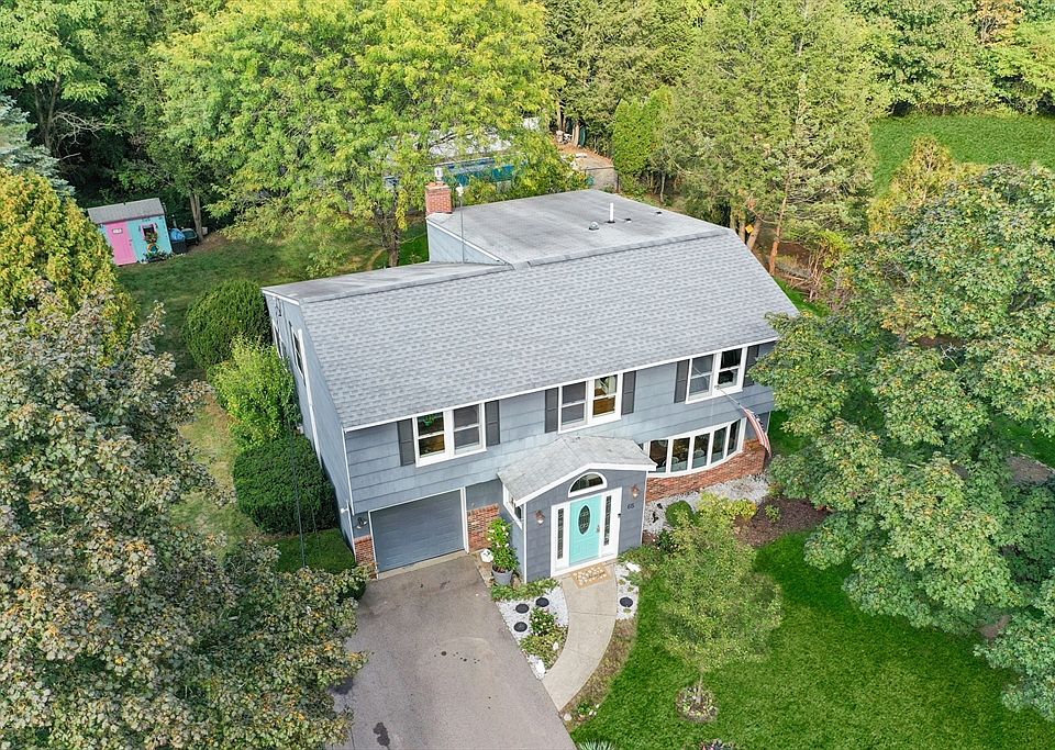 Spacious and sunny colonial with central AC and inground pool is ideally located in one of Holliston's most popular neighborhoods, close to commuter rail, shops, and major routes. Fabulous open kitchen is bathed in sunlight, featuring white cabinetry, stainless appliances (including the double oven!), large eating area with bay window, oversized peninsula w/storage and seating, pantry and abundant countertop space. Fireplaced family room with slider to patio and lovely patio and backyard; vaulted ceiling living room with HW floors under carpet; convenient 1st floor laundry and powder room complete the main level. Upstairs are all four bedrooms with hardwood floors PLUS a bonus room or additional bedroom. Primary bedroom offers two closets plus its own private full bathroom. Updates include: 4 BR septic system (2025); interior painting; oil tank and HW heater (2022); windows; pool liner, pump & filter. Flat, beautiful yard with fenced pool area. Such great space, both inside & out!