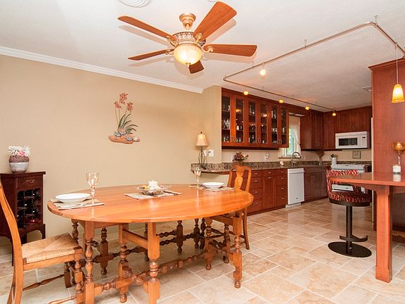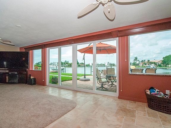 This property is your own slice of paradise, beautifully remodeled in 2012! This STUNNING waterfront home has a unique view of open canal water. The elegance of its exterior and lush landscaping offers a fitting first impression of what welcomes you inside. Completely remodeled, this home boasts top of the line upgrades from PGT Hurricane Impact windows and sliding glass doors, Cambria quartz countertops, travertine tile and carpeting, updated appliances, state of the art Kohler and Grohe plumbing, and track lighting. Waterside welcomes you to a beautifully private, brick paver patio, complete with a shuffleboard, dock and boat lift, also a new Hot Springs Spa and Sea Doo Lift, which is negotiable with sale of property. This meticulously maintained property will impress and delight you!