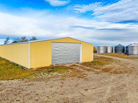 SHOP SPACE AND OUTBUILDINGS: The farmsite is fully equipped with everything you will need for a successful operation. The largest of the 3 SHOPS on the property measures at 50X105ft (5250SF total). The east side overhead door is 14'H X 16'W with a second 14 X 14ft overhead door on the north side, concrete floor with drains, and power. The second... metal shop is 1536SF with concrete floor, 14ft slider doors, 220 power, and an insulated and heated workshop with air compressor that conveys and an upstairs loft for extra storage. The 1600SF quonset also has concrete floors and 14ft slider doors. A small, fully enclosed livestock barn at the back completes the outbuildings here. All buildings including the farmhouse and the bins are run on the same meter.