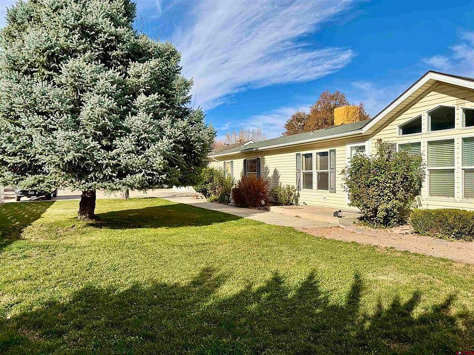 This inviting 4-bedroom, 3-bath property offers all the space and comfort you’ve been looking for! Fresh updates include new flooring, new paint, and new appliances, giving the home a clean, move-in-ready feel. A light and bright formal dining room or second living room/den sits right off of the kitchen. With plenty of prep space and storage, the kitchen is truly the heart of this home! It also flows into a less formal dining space and a large living room, with French door access to the back patio. Three bedrooms and two baths (one en-suite, one stand alone) are situated on this end of the home, as well as a large dedicated laundry/mud room. On the opposite side of the home is the primary suite, complete with a massive walk in closet and spacious attached bath. The home is set on a generous .06-acre lot and you’ll enjoy mature landscaping, a dedicated garden area, and a lush yard maintained by an underground sprinkler system. A fully enclosed shed is located near the garden. The property boasts ample parking space both on the east and west sides of the home. The spacious covered patio is perfect for relaxing or entertaining while taking in beautiful views of the Grand Mesa. The detached garage includes an extra room that is ideal for a workshop, man cave, extra storage, or just space for additional hobbies. A huge 43’x37’ concrete parking pad connects the garage area to the main home, and offers plenty of room for vehicles, toys, or projects. The private backyard is fully fenced. Enjoy the peaceful, country-like setting—all while being just minutes from town for everyday convenience. Don’t miss out on all this fantastic property has to offer!