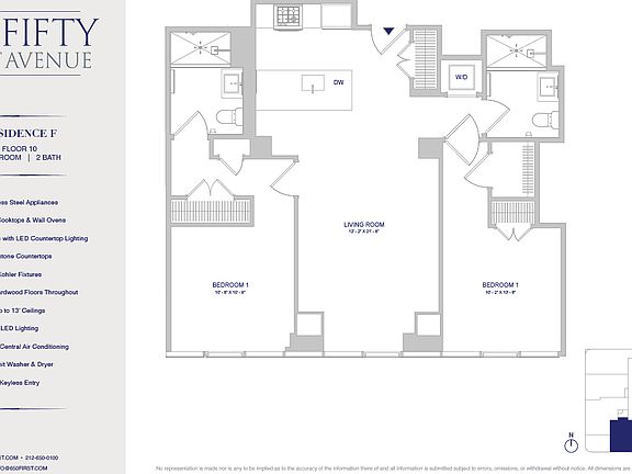 Step into a spacious two-bedroom apartment where floor-to-ceiling windows facing West bathe the open layout in soft, natural light, accentuating up to 13-foot ceilings and elegant stone and wood flooring. The gourmet kitchen dazzles with stainless steel appliances, including an electric cooktop and wall oven, sleek Silestone countertops, and custom cabinets illuminated by LED lighting. The spa-inspired bathroom, featuring premium Kohler fixtures, exudes tranquility. Everyday luxury shines through with an in-unit washer/dryer, individual central air conditioning, keyless entry, and energy-efficient LED lighting, perfect for a comfortable and stylish lifestyle.