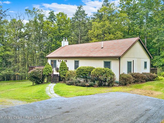 Situated off the road and embraced by lush woods, this beautifully maintained contemporary home has been lovingly cared for by its sole owner. The freshly painted interior and newly refinished hardwood floors create a welcoming ambiance, enhanced by an abundance of natural light that fills the entire first floor throughout the day. The open floor plan is perfect for entertaining, featuring a cozy wood stove that adds warmth during the winter months. All NEW appliances added to the kitchen and has additional seating space at the center island. Adjacent to the kitchen and dining area, the heated sunroom provides a serene retreat with oversized windows that invite you to bask in the beautiful natural landscape surrounding the property. This tranquil space is ideal for enjoying morning coffee or curling up with a good book while soaking in the views. The primary bedroom is a private retreat, complete with an en-suite bath, a spacious walk-in closet, and sliding doors that lead to a wrap-around deck—ideal for enjoying morning coffee, evening sunsets or the beautiful seasonal mountain views. Additional bedrooms offer comfort and flexibility, complemented by a full bath with a shower/tub combination. The lower level boasts two generously sized finished rooms, providing extra living space that can be tailored to your needs, whether as a guest suite, home office, or recreational area. This home's location provides the perfect blend of tranquility and convenience, with easy access to local amenities, ski centers, and fabulous restaurants. Don't miss the opportunity to make this serene haven your own!