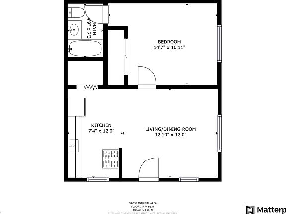 - Total interior livable area: 474 sqft