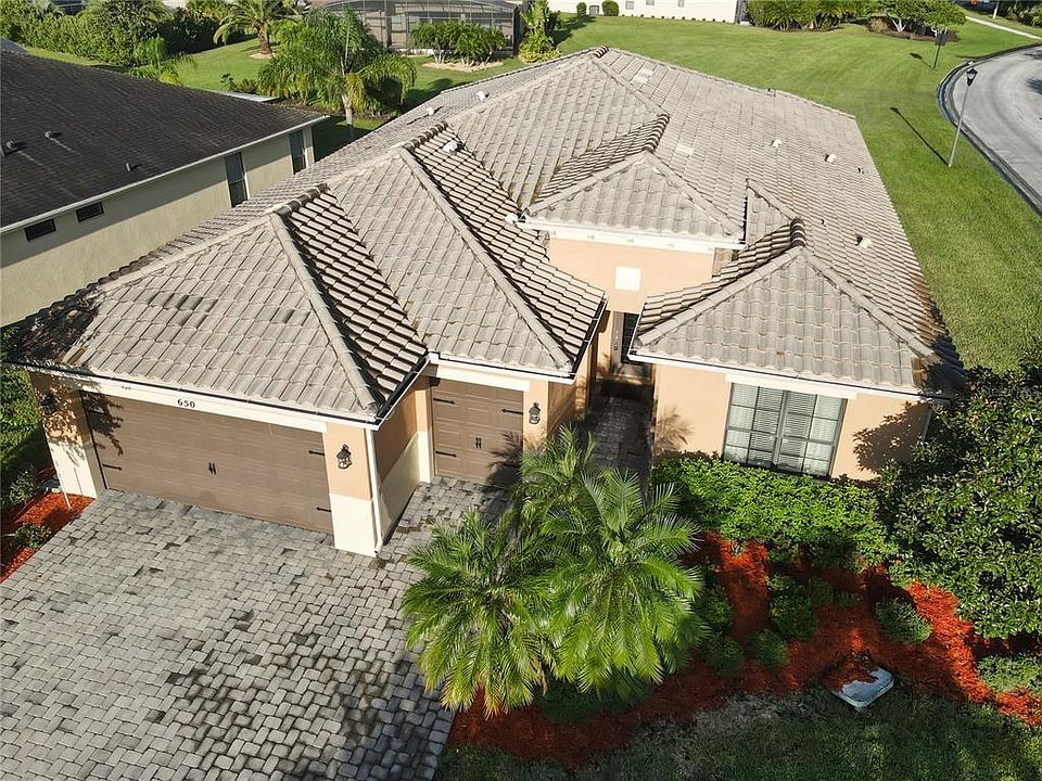 One or more photo(s) has been virtually staged. ***PRICE REDUCTION ALERT*** NOW IS YOUR OPPORTUNITY*** THIS IS THE IDEAL AND PERFECT LOCATION in Solivita for active resident eager to embrace the vibrant lifestyle this community is known for. This stunning CANNES MODEL HOME with 2,352 sq. ft. OPEN-CONCEPT of interior space with a total area of 3,180 sq.ft. home sits strategically just steps from THE PALMS, Solivita’s UPSCALE RESORT-STYLE FITNESS COMPLEX. Enjoy access to a STATE-OF-THE-ART GYM, AEROBIC STUDIO with Free fitness classes, a 4,000 sq. ft. HEATED LAP and SPLASH POOL, and FOUR PICKLEBALL COURTS, the ultimate balance of downtime and play, designed to inspire and invigorate your routine. This stunning MEDITERRANEAN-STYLE HOME, built in 2012, highlights timeless architectural charm with its classic TILE ROOF. Offering THREE SPACIOUS BEDROOMS including TWO LUXURIOUS PRIMARY SUITES, each with EN-SUITE BATH, double sink and dual WALK-IN CLOSETS, this residence is thoughtfully designed for comfort and privacy. The highlights include a FORMAL DINING ROOM, a cozy BREAKFAST NOOK, and a generous GREAT ROOM ideal for entertaining and everyday living. At the heart of this elegant home is a true GOURMET KITCHEN, an entertainer’s dream. Featuring 42" maple cabinetry, gleaming GRANITE COUNTERTOPS, and STAINLESS-STEEL appliances including a DOUBLE OVEN, this culinary space is as functional as it is beautiful. A designer faucet accents the under-mount sink, while lower cabinet pull-outs and a stylish tile backsplash add thoughtful detail. Seamlessly integrated with the expansive great room, the kitchen also offers a generous EXTENDED BREAKFAST BAR with Pendant lighting. and a cozy BREAKFAST NOOK. A dedicated laundry room completes this well-appointed layout. Modern 18" tile floors flow through the living areas, paired with recessed lighting that adds warmth and sophistication to the kitchen and living room. Enjoy the comfort of TWO beautifully appointed PRIMARY SUITES, with charming bay windows and TWO generous WALK-IN CLOSETS. One suite invites relaxation with a GARDEN TUB, while the other offers a refreshing ENCLOSED WALK-IN SHOWER, perfect for everyday ease. The expansive COVERED AND SCREENED LANAI (32' x 17') offers a serene setting for entertaining and everyday enjoyment. Perfect for hosting family gatherings or relaxing after a day of Solivita’s world-class amenities, this private retreat is ideal for barbecues, quiet mornings, and unwinding in comfort. This home features a TWO-CAR GARAGE with a spacious driveway that can accommodate additional parking for two more cars PLUS SEPARATE GOLF CART GARAGE. Gated Golf Community of Solivita with an impressive array of amenities, two PGA 18-holes Championship golf courses, two State of the Art Amenity Centers, fourteen pools, restaurants, and over two hundred different social clubs. Near supermarkets, restaurants, pharmacies, hospital, new express way, just 25 minutes to major attractions, and the new Sun Rail Poinciana Station. Some photos have been staged.